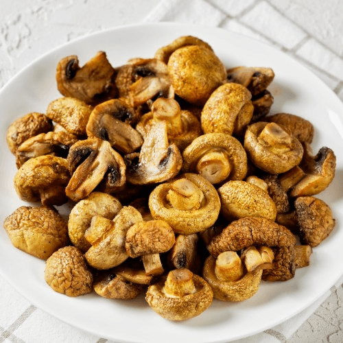 Mixed greens with marinated chicken breast, tomatoes, red onion, mozzarella and topped with deep-fried mushrooms